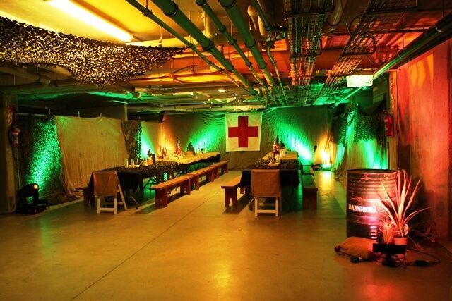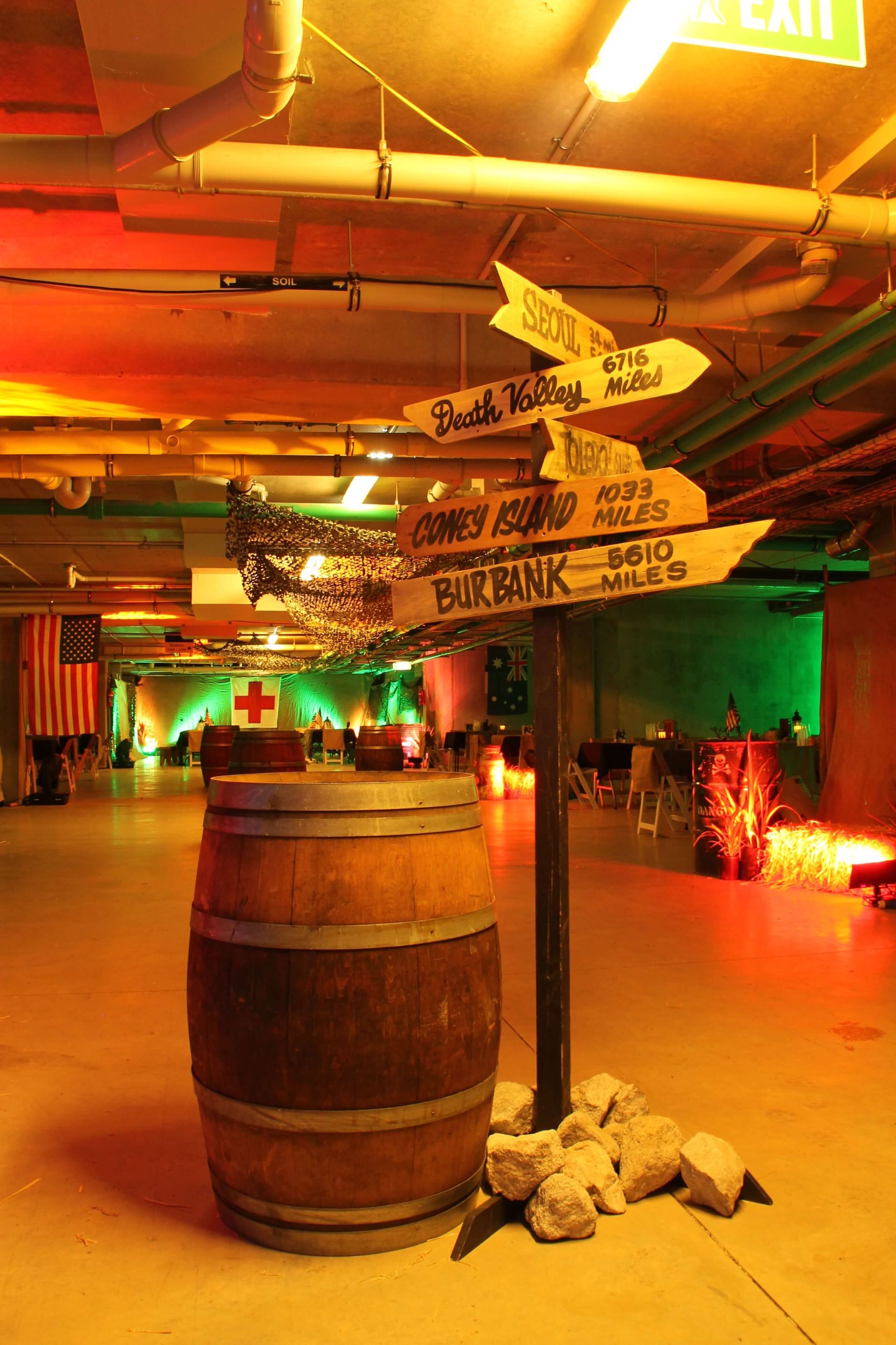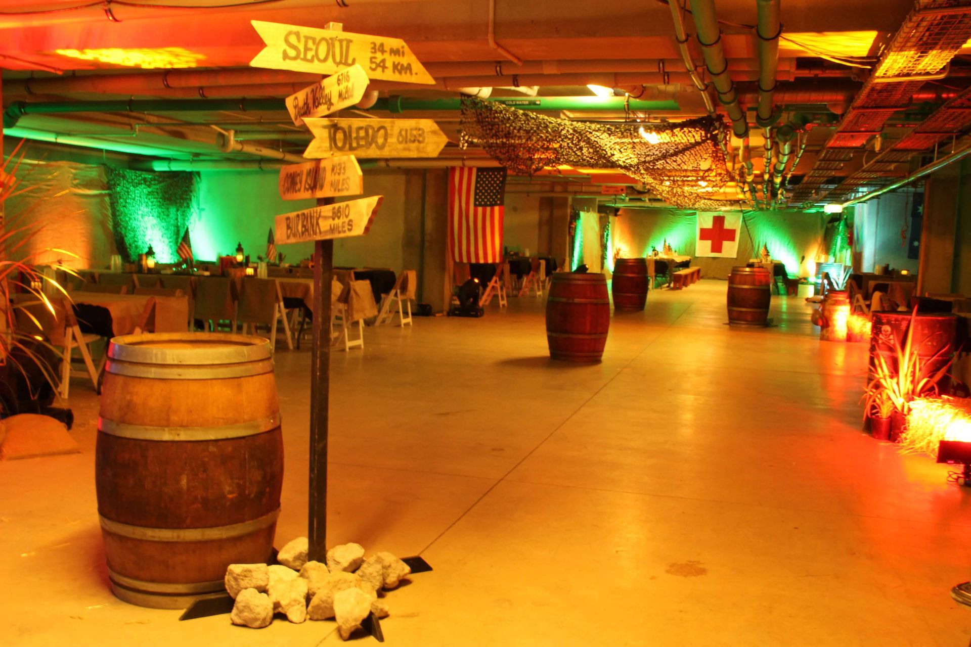 This event is designed to bring out your guests’ adventurous side! With rugged camo styling, military-inspired props, sandbag décor, camo netting, fresh plants, 44 gallon drums, country flags and bold green-and-khaki tones, your venue is transformed into a high-energy, mission-ready base camp.