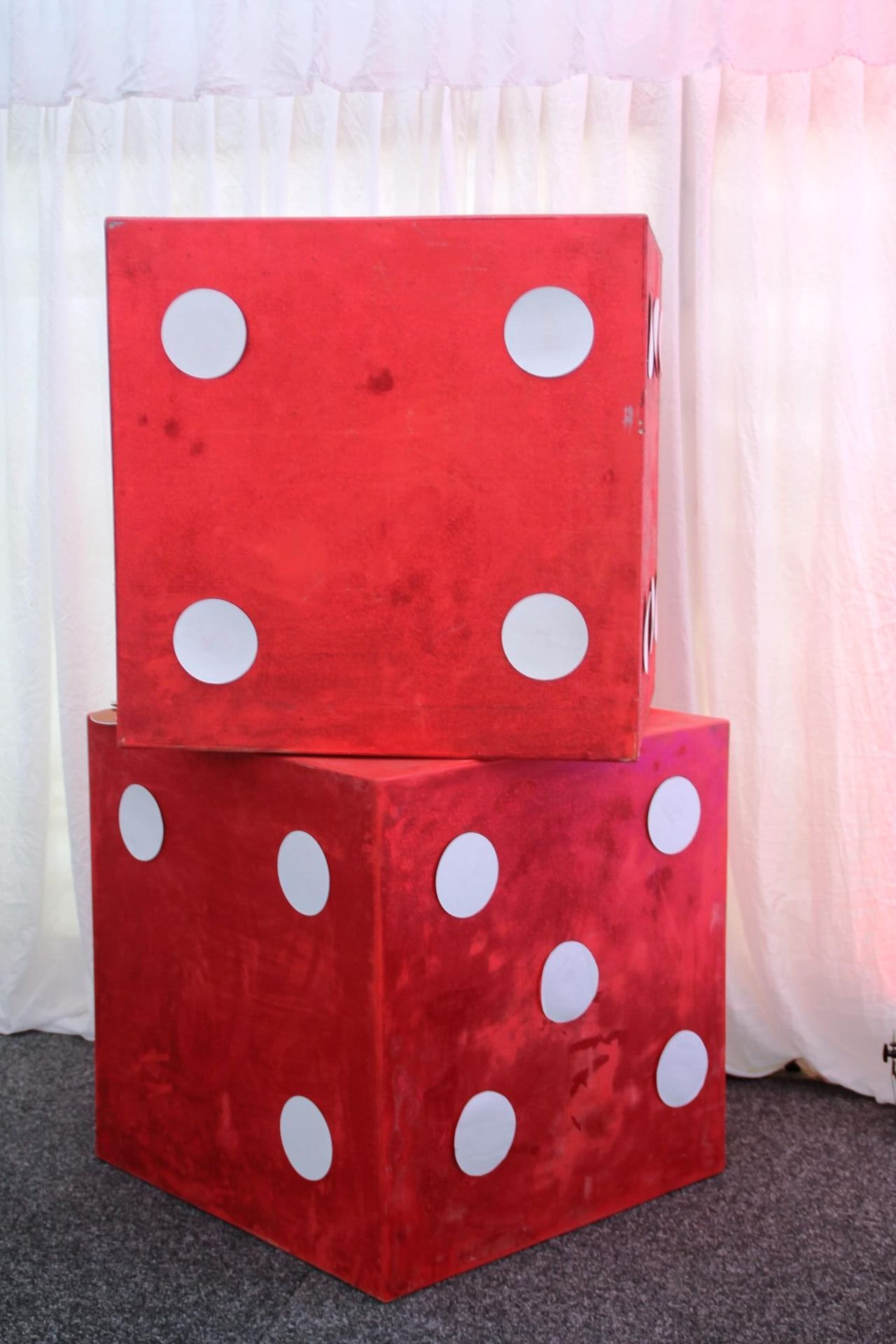 Around the room, large playing cards are mounted on the walls, oversized dice and dollar signs are on display.