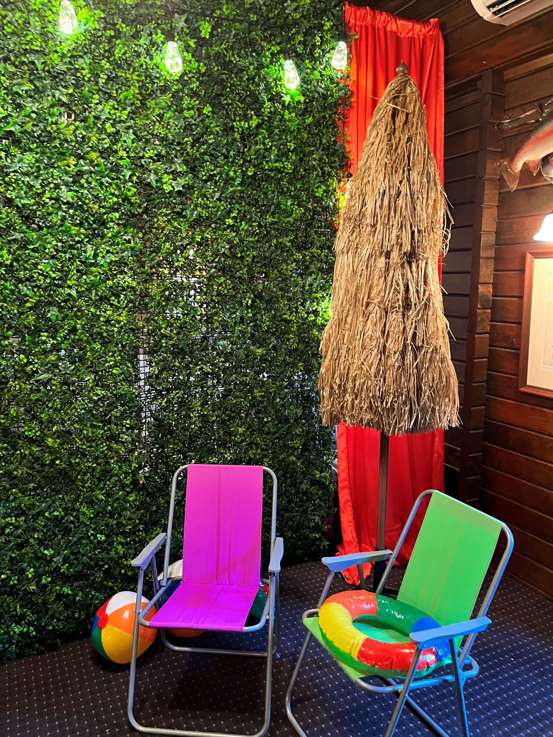 A lush, foliage-inspired backdrop completes the look—perfect for capturing those island-style photo moments. With sun loungers, umbrellas and beach balls, tropical lighting, and a warm, welcoming vibe, your Hawaiian luau promises sun-soaked fun—no passport required.