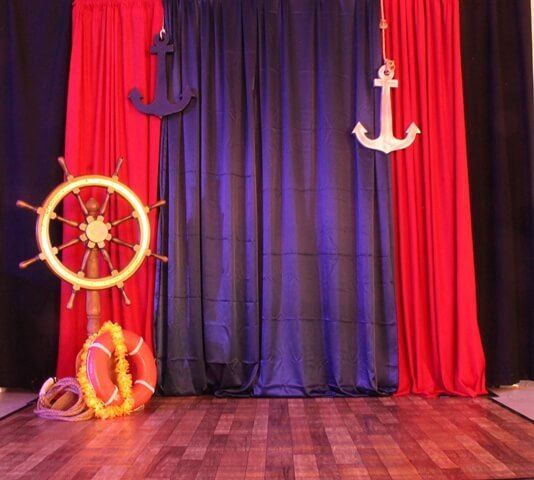 Crisp ocean blues, coastal charm, and maritime details come together to create a breezy, sophisticated atmosphere. Anchors, ropes, lanterns, festoon light strings and ship wheels dress the space, while navy-and-white colour palettes with pops of red bring that classic seaside look to life.