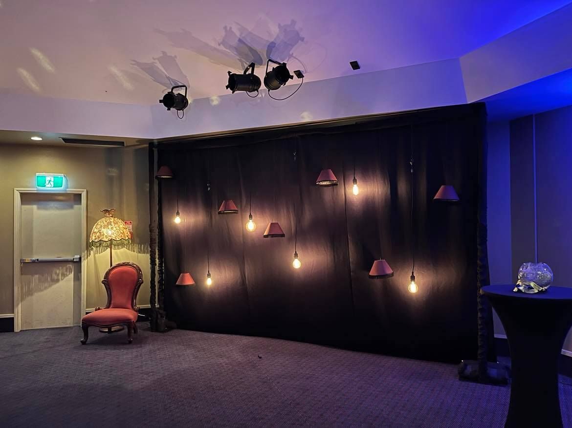 A feature brick wall backdrop complete with suitcases will transport you through eras past, while disco balls and fairy lights bring a splash of glam to the scene. Expect vintage book stacks, teacup towers, and unexpected treasures tucked into every nook – all sourced sustainably and styled with flair.
