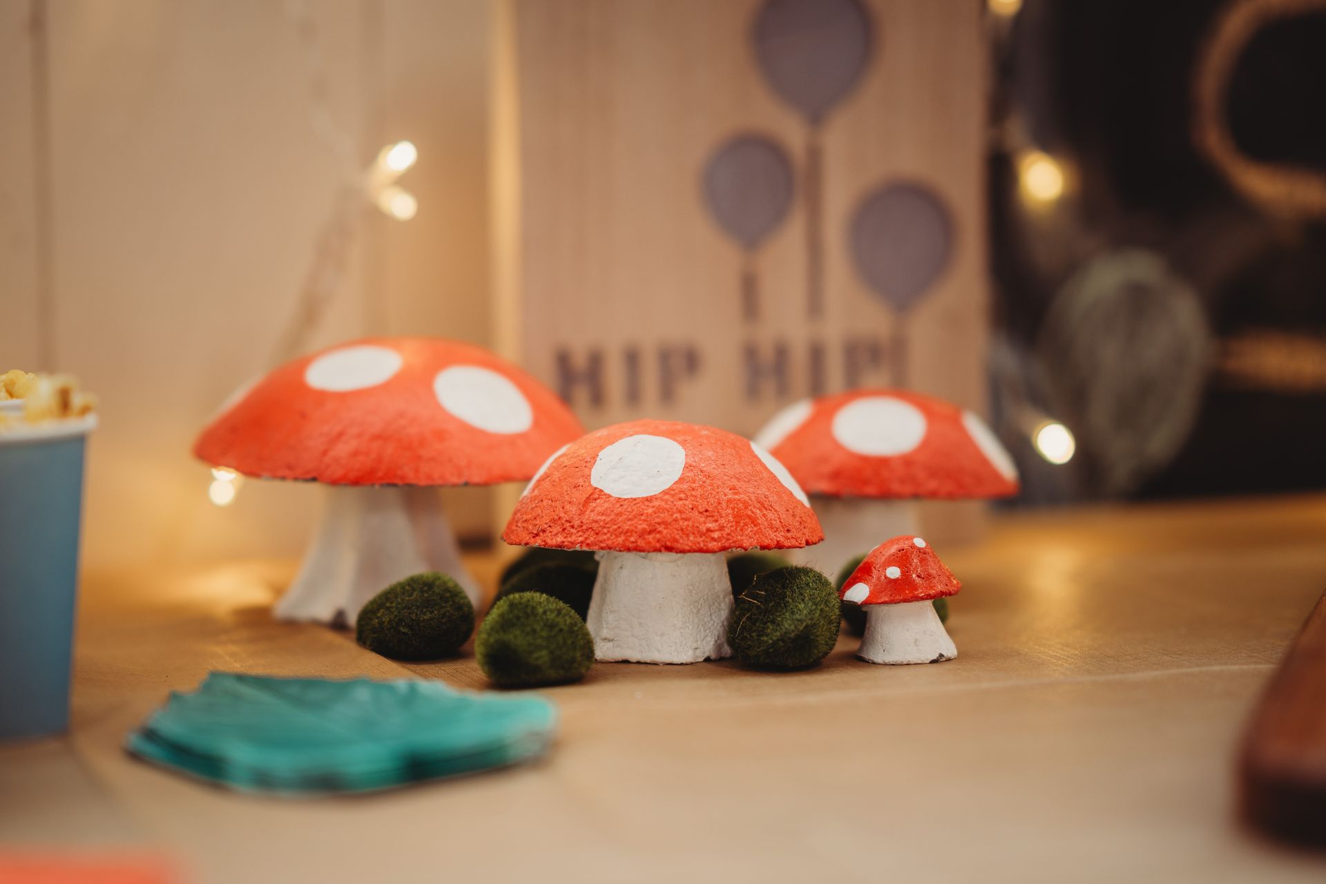 Imagine hanging lanterns, toadstools, and moss-covered tables adorned with bird cages and glowing candlelight.