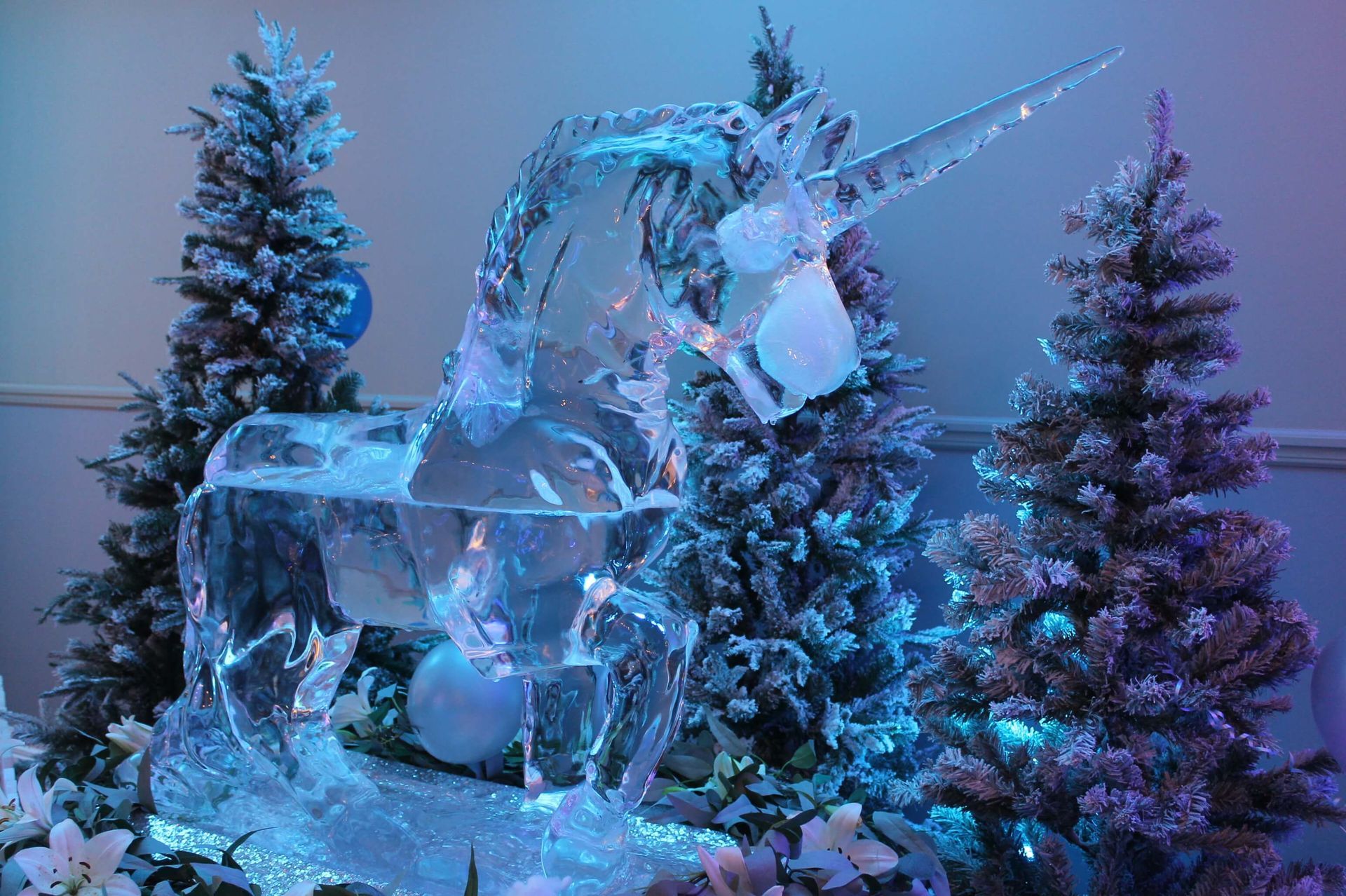 From the moment guests arrive, they'll be swept into a magical, icy atmosphere—walking down a crisp white carpet as delicate snowflakes fall from above.